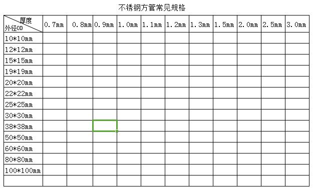 不銹鋼方管種類和規格表