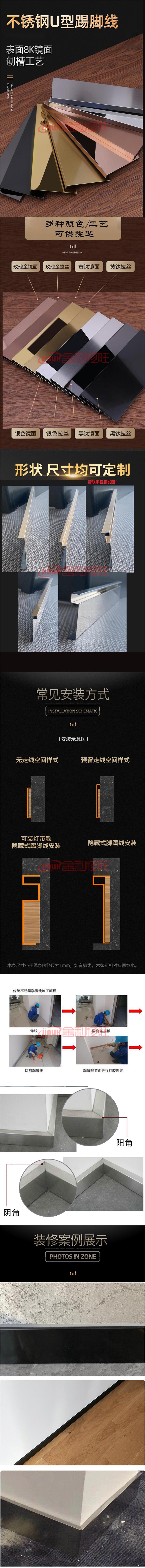 廠家直銷304不銹鋼踢腳線 源頭廠家 價格更低! 2021-05-1516:37:52廠家直銷304不銹鋼踢腳線 源頭廠家 價格更低!已關閉評論品名:不銹鋼踢腳線? ??廠家:金利恒不銹鋼材質:201不銹鋼,304不銹鋼;? ?常用厚度:0.65mm,0.75mm,0.85mm,1.2mm等 ;高度:10cm,8cm,5cm等皆可定制;顏色:白拉絲,黑鈦,灰鈦,鈦金,玫瑰金,香檳金,古銅色等。表面工藝:拉絲,鏡面,噴砂,亂紋 不銹鋼門套踢腳線視頻 贊 29 分享
